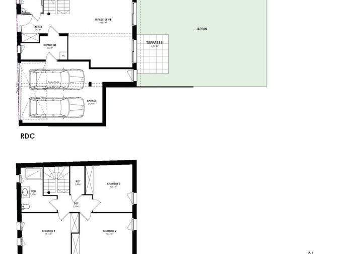 Maison A - Surface habitable 103,94 m2 - Surface utile 143,41 m2 - 3 chambres - Terrain 175,53 m2